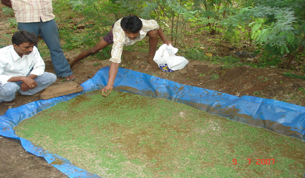 Covering of plastic sheet in Azolla pit