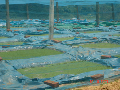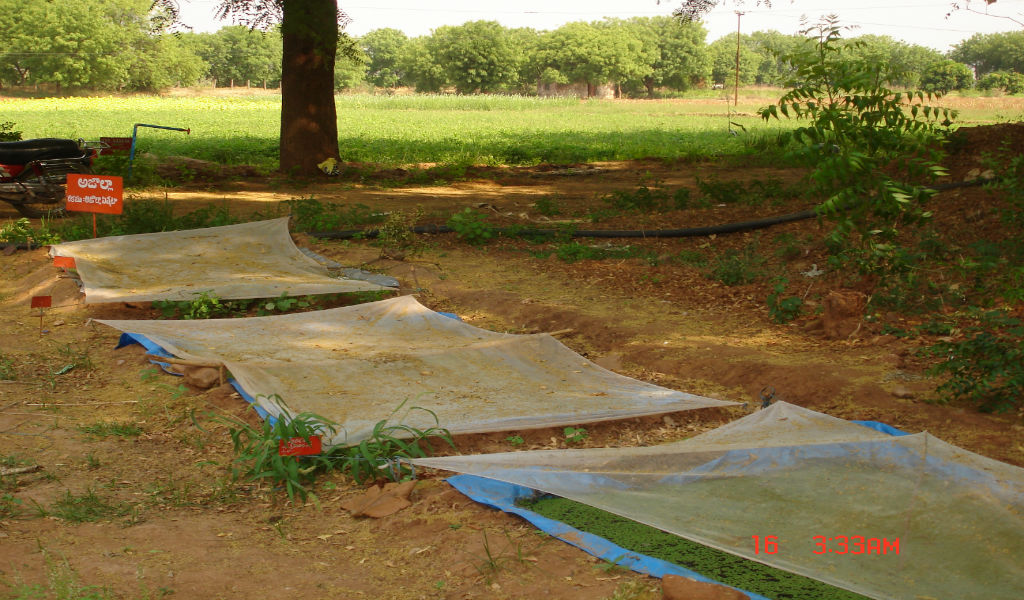 Covering of Azolla pit with Mosquito net to prevent tree leaves into Azolla pit