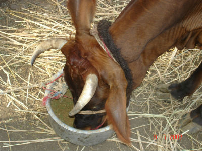 Feeding of Azolla with concentrate mixture by crossbred cow.