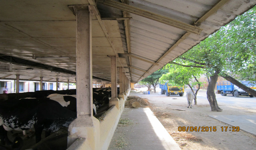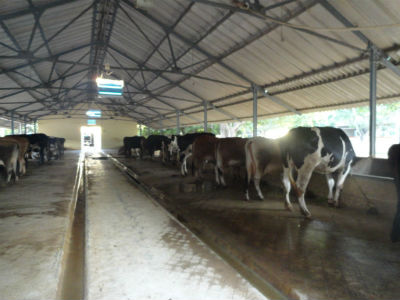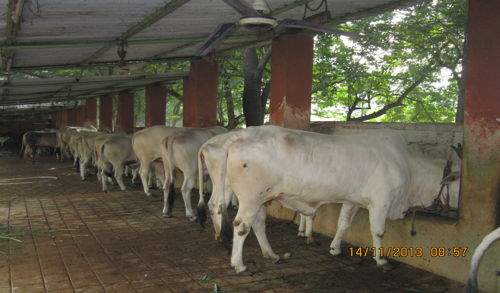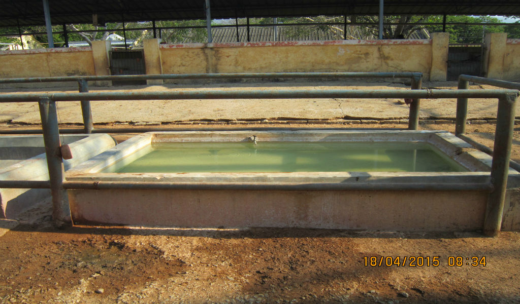 Gomutra collection in dairy shed.